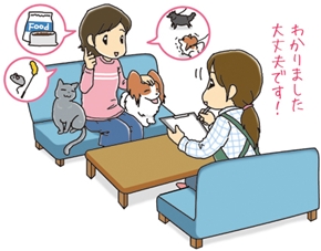 ペットシッターがお伺いして、ペットとのお顔合わせ、詳細に内容についてご案内させていただきます。